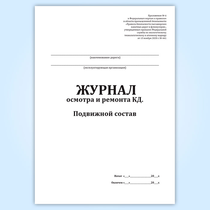 Журнал осмотра и ремонта канатной дороги. Подвижной состав (форма № 8) в Рошале купить