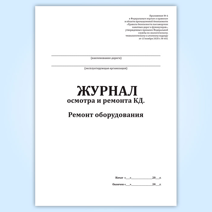 Журнал осмотра и ремонта канатной дороги. Ремонт оборудования (форма № 10) в Рошале купить