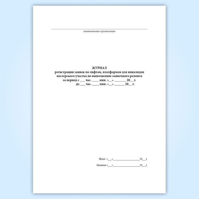 Журнал регистрации заявок по лифтам, платформам для инвалидов мастерского участка по выполнению заявочного ремонта в Рошале купить