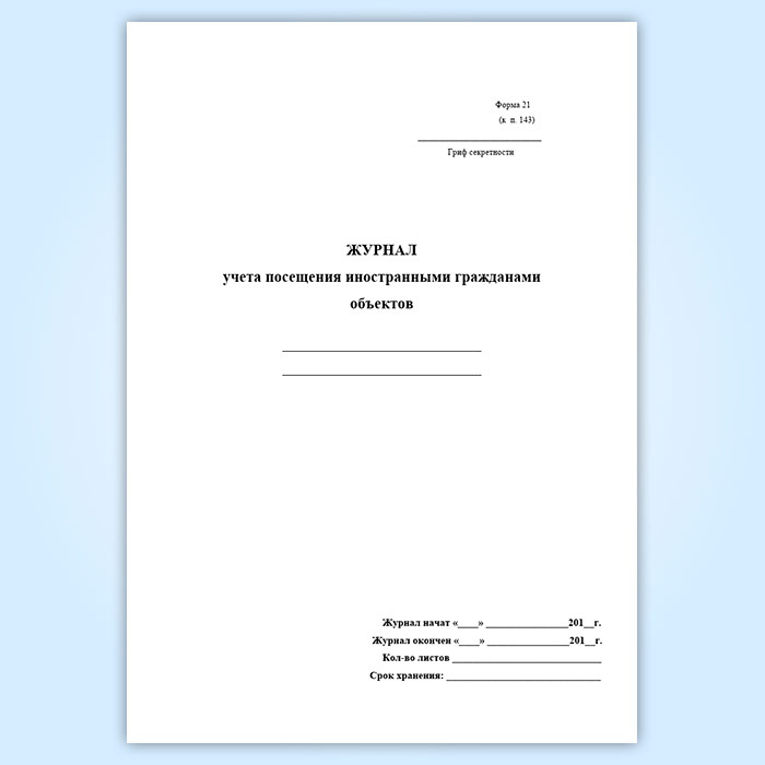 Журнал учета посещения иностранными гражданами объектов (форма 21) в Рошале купить