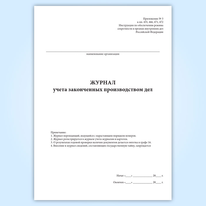 Журнал учета законченных производством дел в Рошале купить