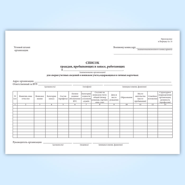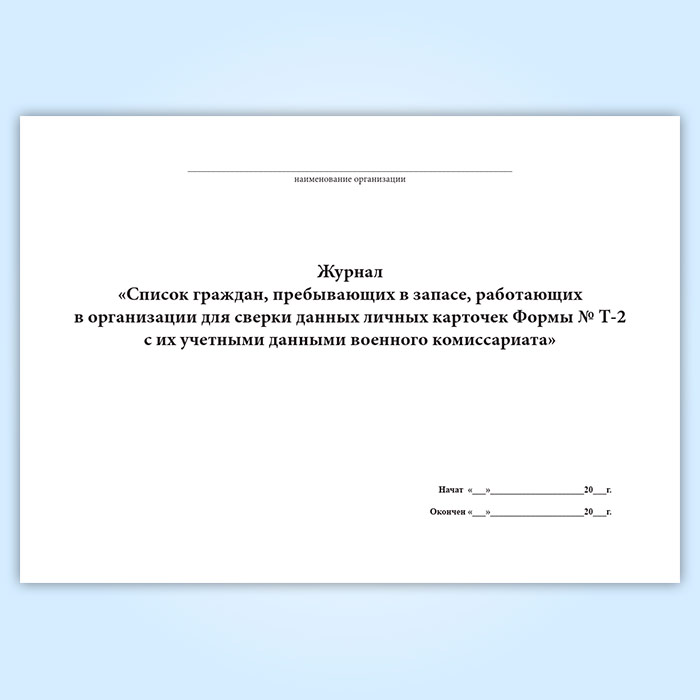 Журнал «Список граждан, пребывающих в запасе, работающих в организации для сверки данных личных карточек Формы № Т-2 с их учетными данными военного комиссариата» в Рошале купить