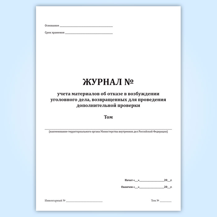 Журнал учета материалов об отказе в возбуждении уголовного дела, возвращенных для проведения дополнительной проверки в Рошале купить