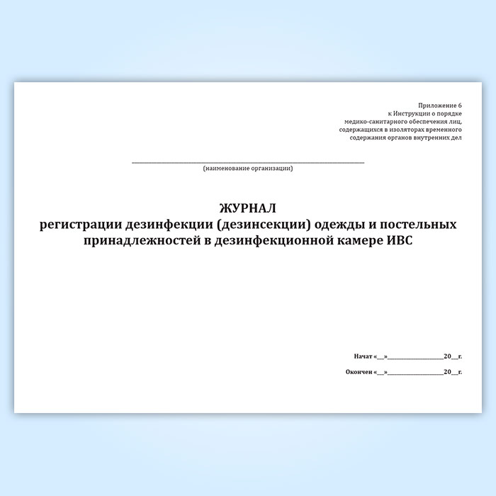 Журнал регистрации дезинфекции (дезинсекции) одежды и постельных принадлежностей в дезинфекционной камере ИВС в Рошале купить