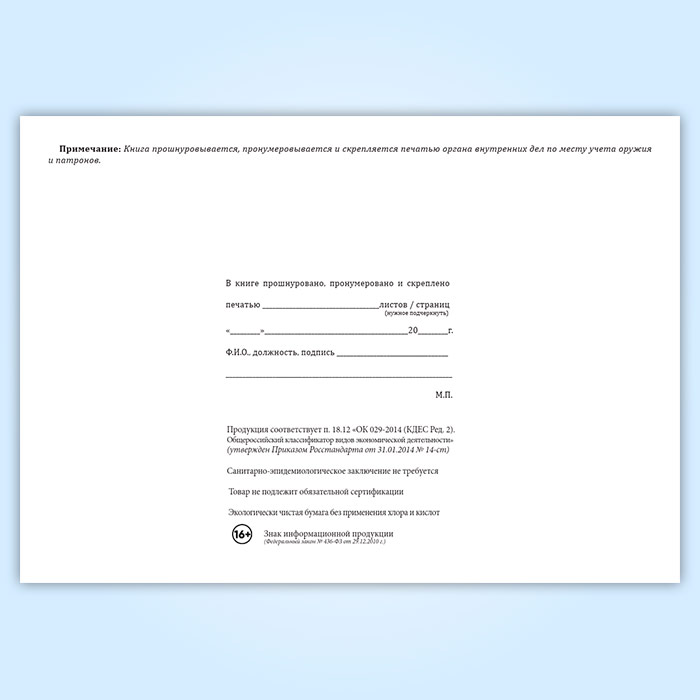 Книга номерного учета и персонального закрепления оружия и патронов в Рошале купить