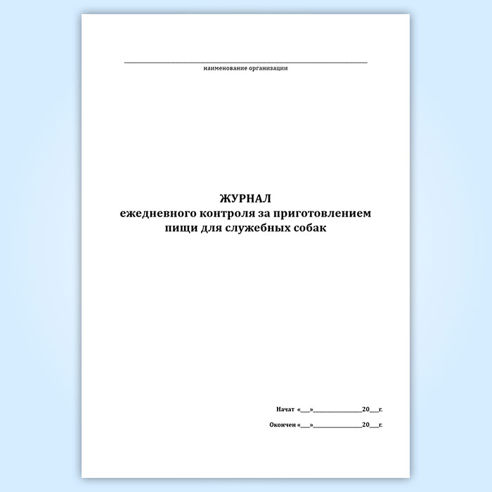 Журнал ежедневного контроля за приготовлением пищи для служебных собак в Рошале купить