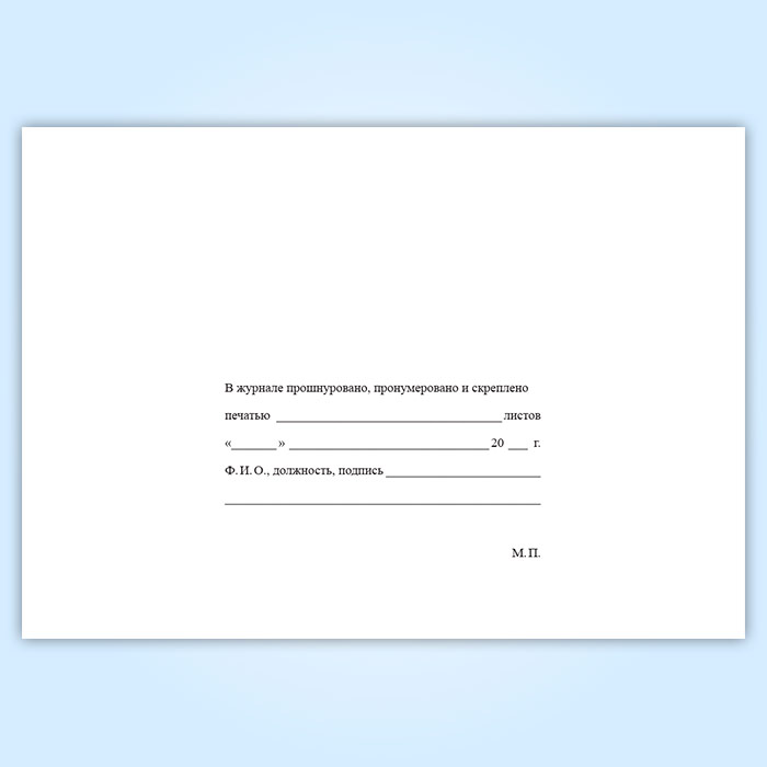Вы получаете печатную продукцию прошнурованной и c местом для вашей печати в соответствии с действующими нормативными документами: