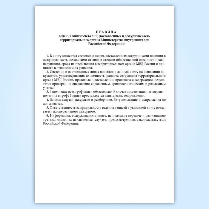 Книга учета лиц, доставленных в дежурную часть территориального органа МВД РФ в Рошале купить