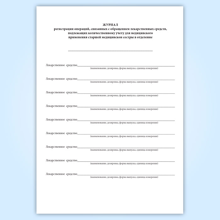 Журнал регистрации операций, связанных с обращением лекарственных средств, подлежащих количественному учету для медицинского применения старшей медицинской сестры в отделение в Рошале купить