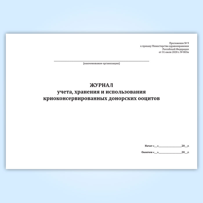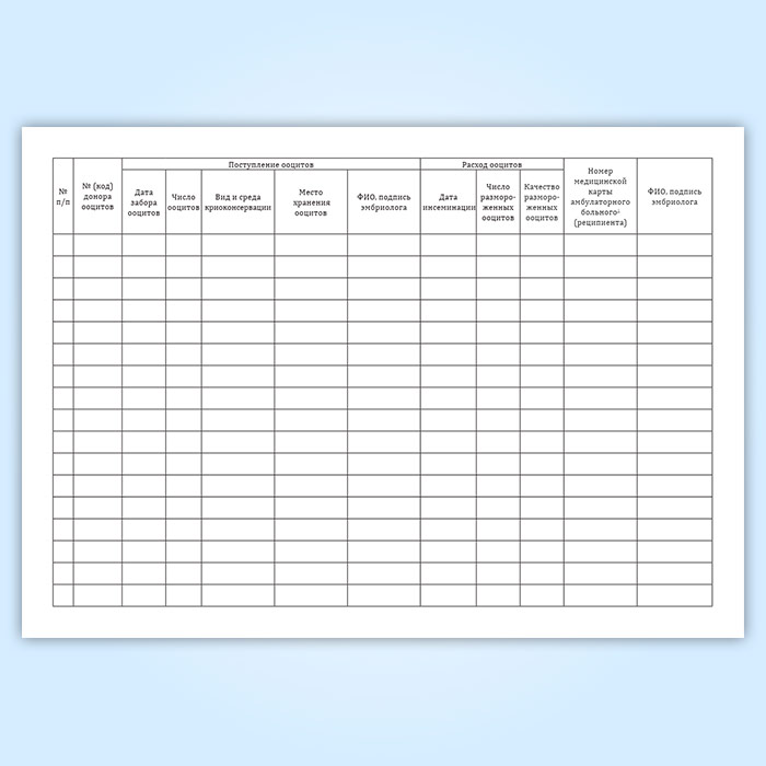 Журнал учета, хранения и использования криоконсервированных донорских ооцитов в Рошале купить