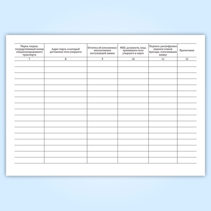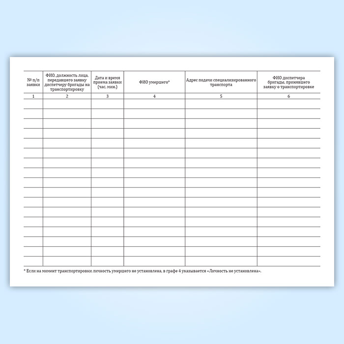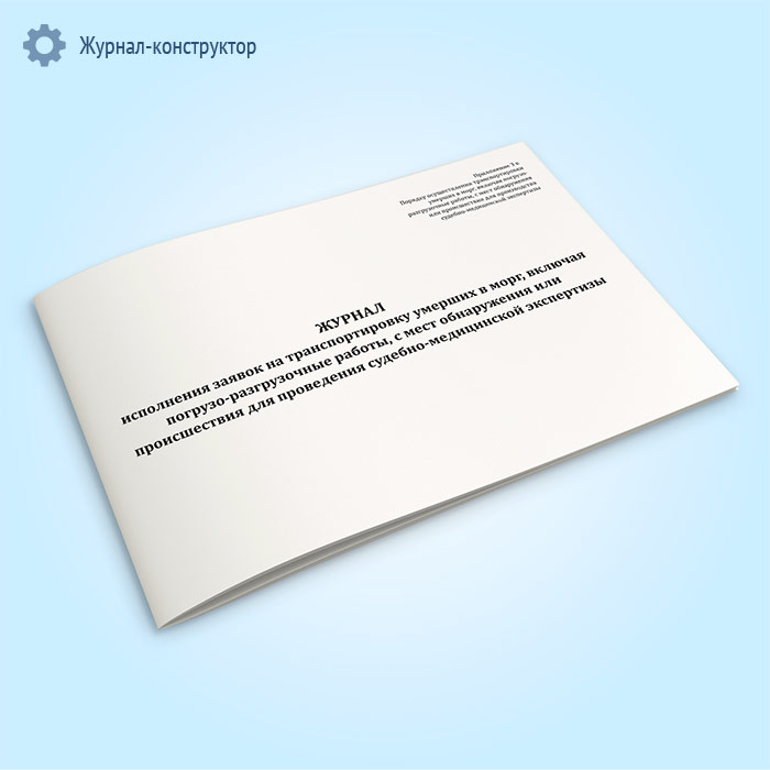 Журнал исполнения заявок на транспортировку умерших в морг, включая погрузо-разгрузочные работы, с мест обнаружения или происшествия для проведения судебно-медицинской экспертизы в Рошале купить