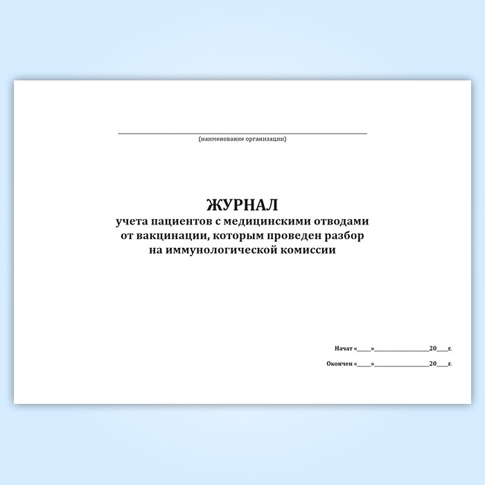 Журнал учета пациентов с медицинскими отводами от вакцинации, которым проведен разбор на иммунологической комиссии в Рошале купить