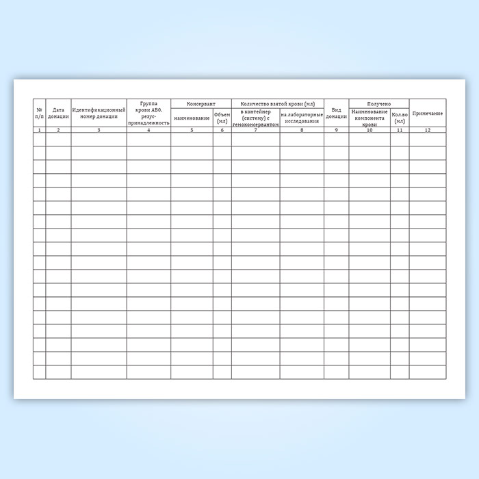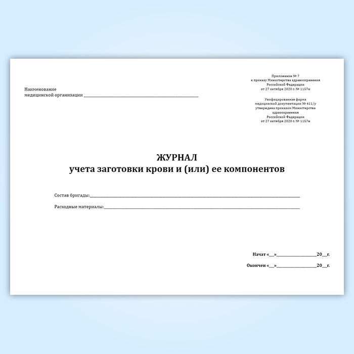 Журнал учета заготовки крови и (или) ее компонентов (форма № 411/у) в Рошале купить