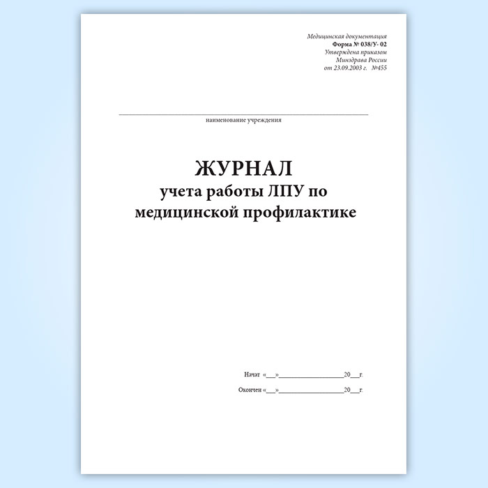 Журнал учета работы ЛПУ по медицинской профилактике (форма 038у-02) в Рошале купить