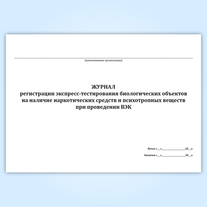 Журнал регистрации экспресс-тестирования биологических объектов на наличие наркотических средств и психотропных веществ при проведении ВЭК в Рошале купить
