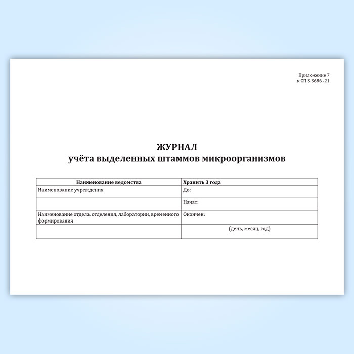 Журнал учета выделенных штаммов микроорганизмов (СанПиН 3.3686-21) в Рошале купить