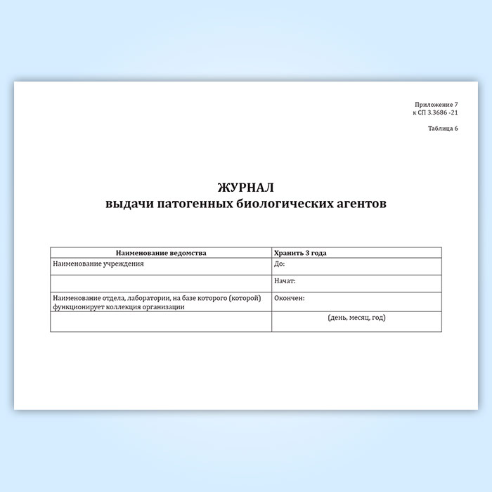 Журнал выдачи патогенных биологических агентов (СанПиН 3.3686-21) в Рошале купить