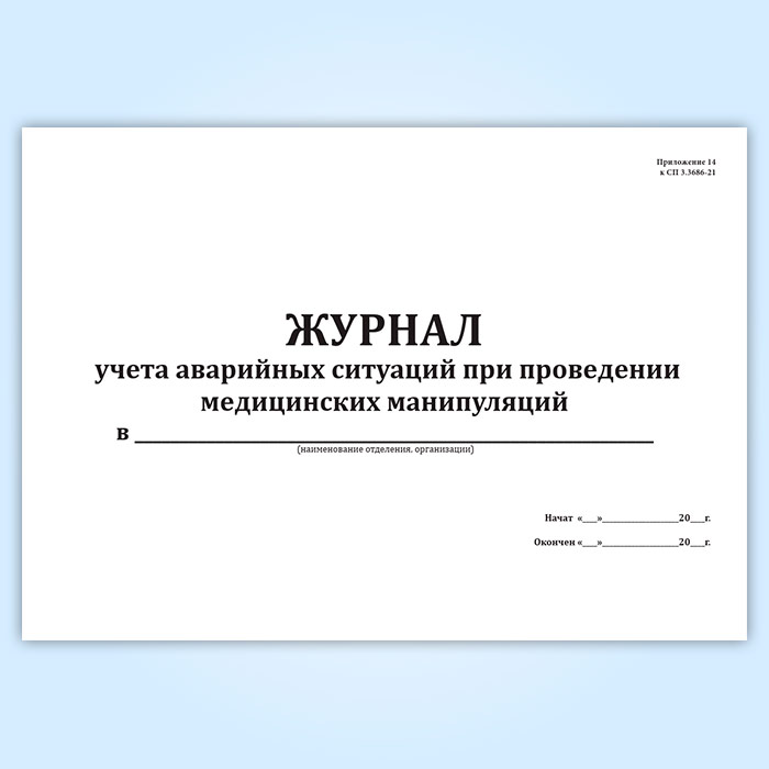 Журнал учета аварийных ситуаций при проведении медицинских манипуляций (СанПиН 3.3686-21) в Рошале купить