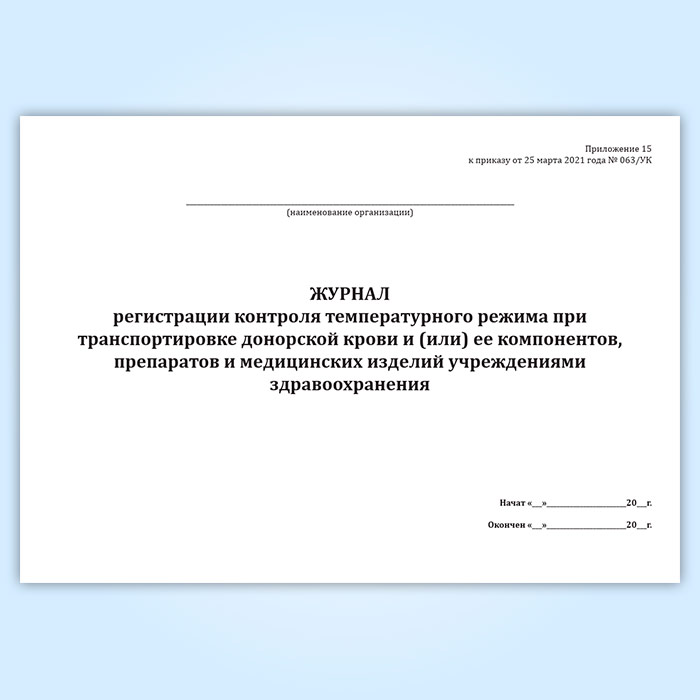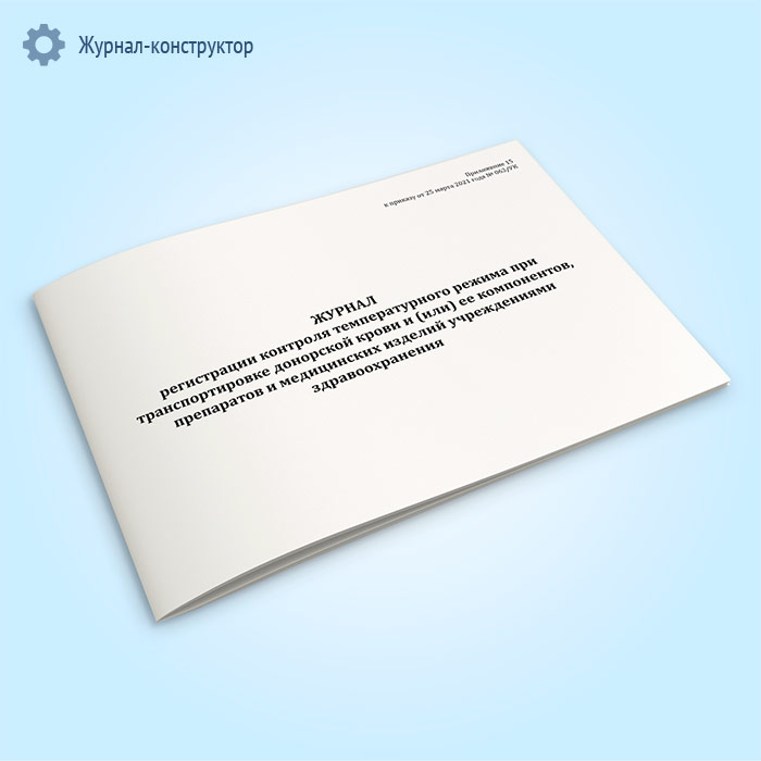 Журнал регистрации контроля температурного режима при транспортировке донорской крови и (или) ее компонентов, препаратов и медицинских изделий учреждениями здравоохранения в Рошале купить
