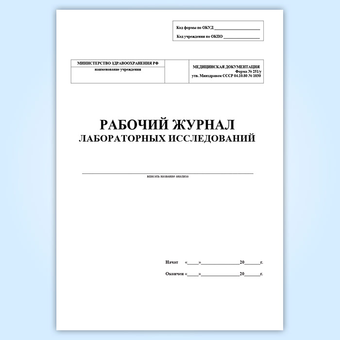 Рабочий журнал лабораторных исследований (форма 251/у) в Рошале купить