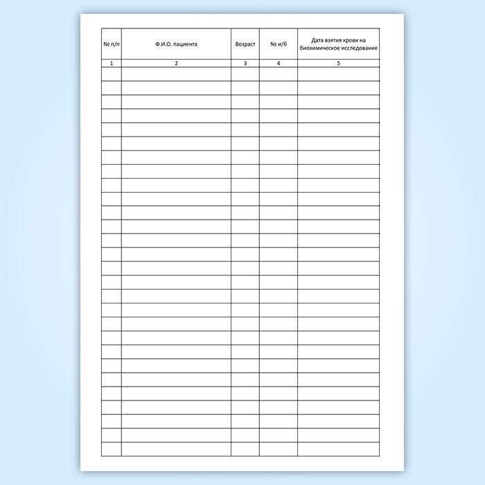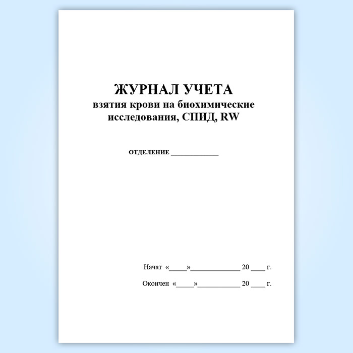Журнал учета взятия крови на биохимические исследования, СПИД, RW в Рошале купить