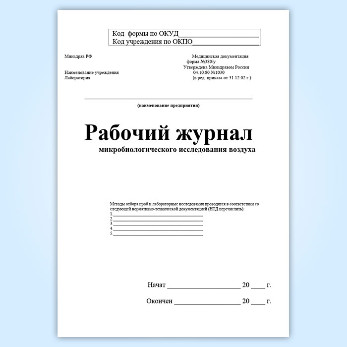 Рабочий журнал микробиологического исследования воздуха (форма 380/у) в Рошале купить
