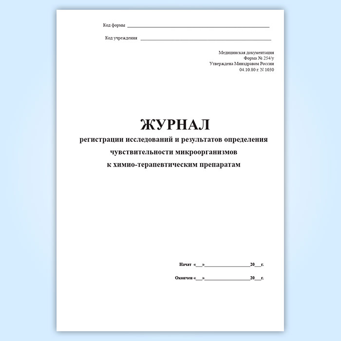 Журнал регистрации исследований и результатов определения чувствительности микроорганизмов к химио-терапевтическим препаратам (форма 254/у) в Рошале купить