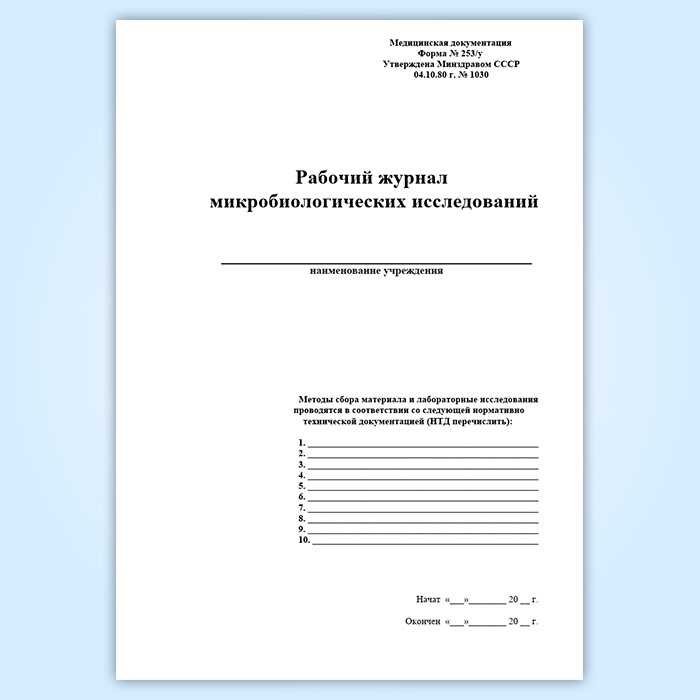 Рабочий журнал микробиологических исследований (форма 253/у) в Рошале купить