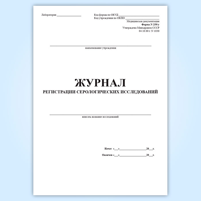 Журнал регистрации серологических исследований (форма 259/у) в Рошале купить