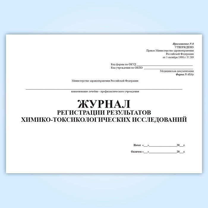 Журнал регистрации результатов химико-токсикологических исследований (форма 453у-06) в Рошале купить