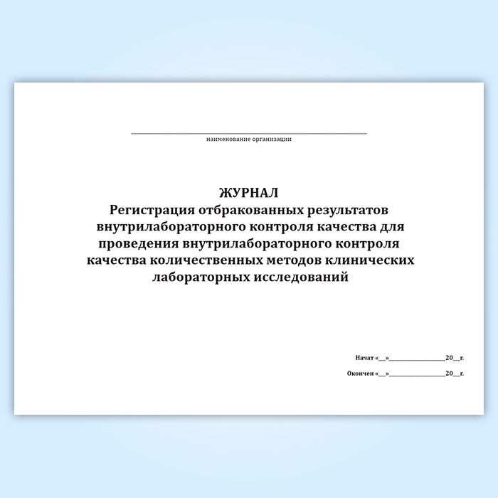 Журнал «Регистрация отбракованных результатов внутрилабораторного контроля качества для проведения внутрилабораторного контроля качества количественных методов клинических лабораторных исследований» в Рошале купить
