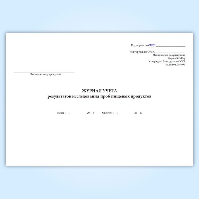 Журнал учета результатов исследования проб пищевых продуктов (форма 346/у) в Рошале купить