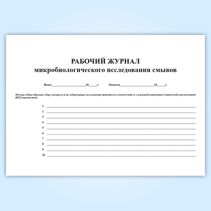 Рабочий журнал микробиологического исследования смывов (форма № 381у) в Рошале купить