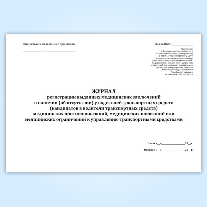 Журнал регистрации выданных медицинских заключений о наличии (об отсутствии) у водителей транспортных средств (кандидатов в водители транспортных средств) медицинских противопоказаний, медицинских показаний или медицинских ограничений к управлению транспортными средствами в Рошале купить