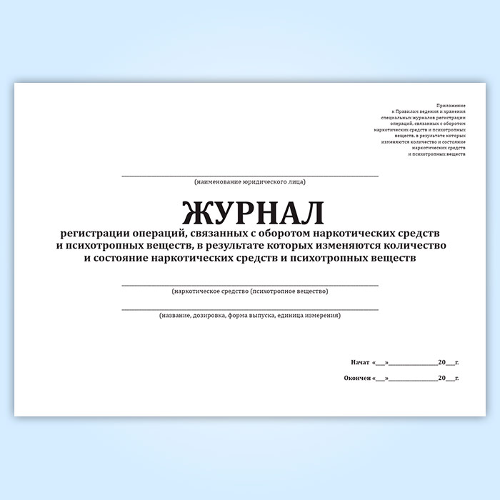 Журнал регистрации операций, связанных с оборотом наркотических средств и психотропных веществ, в результате которых изменяются количество и состояние наркотических средств и психотропных веществ в Рошале купить