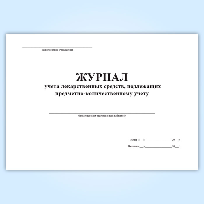 Журнал учета лекарственных средств, подлежащих предметно-количественному учету в Рошале купить