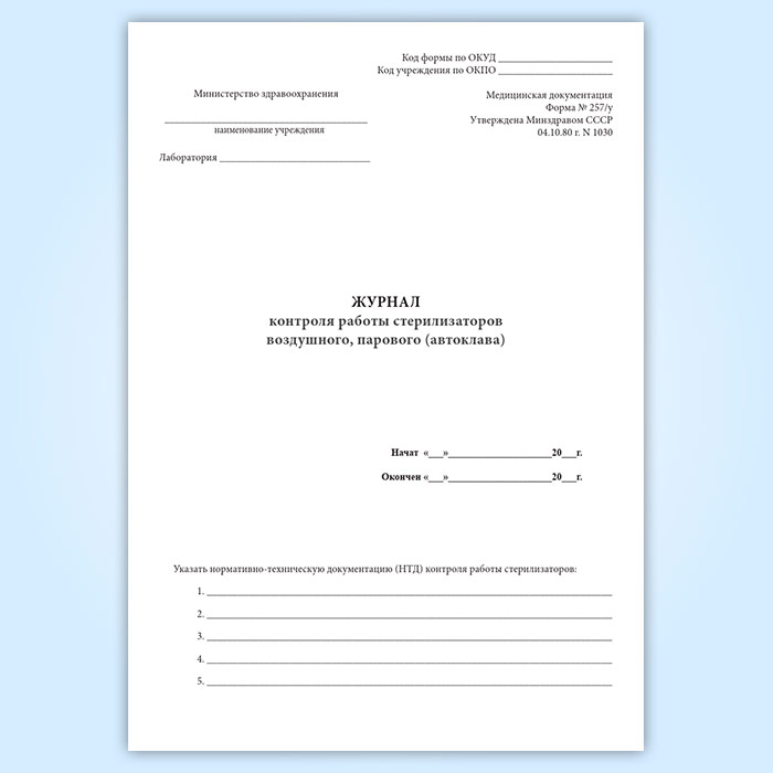 Журнал контроля работы стерилизаторов воздушного, парового (автоклава) (форма 257/у) в Рошале купить