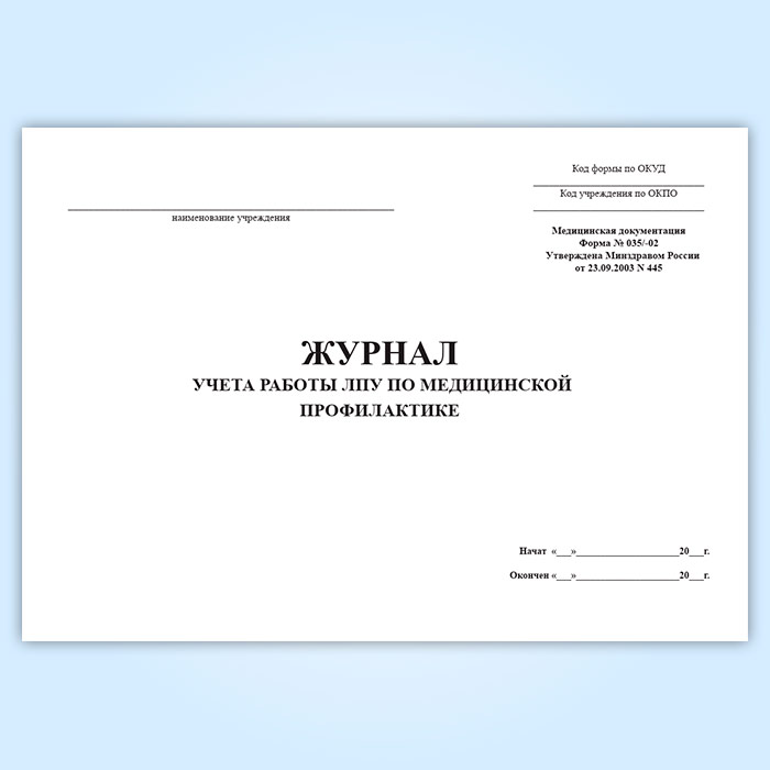Журнал учета работы ЛПУ по медицинской профилактике (форма № 035/-02) в Рошале купить
