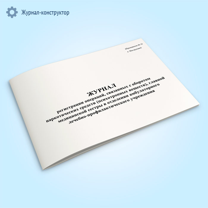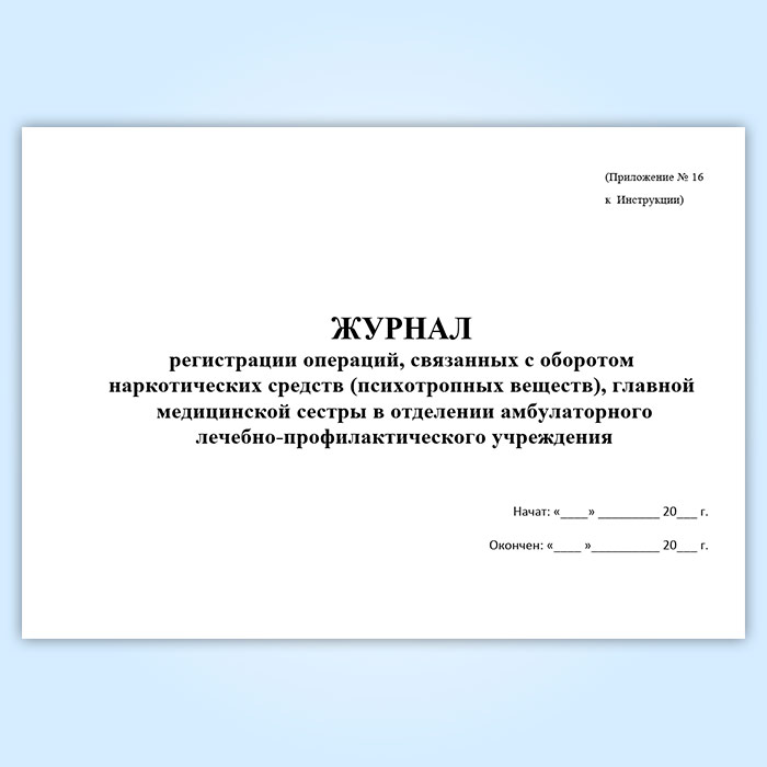 Журнал регистрации операций, связанных с оборотом наркотических средств (психотропных веществ), главной медицинской сестры в отделении амбулаторного лечебно-профилактического учреждения в Рошале купить