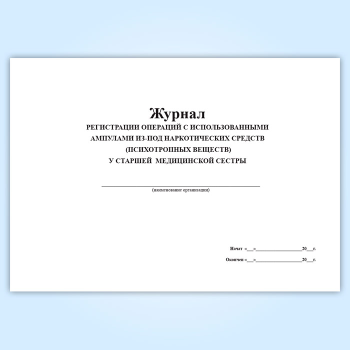 Журнал регистрации операций с использованными ампулами из-под наркотических средств (психотропных веществ) у старшей медицинской сестры в Рошале купить