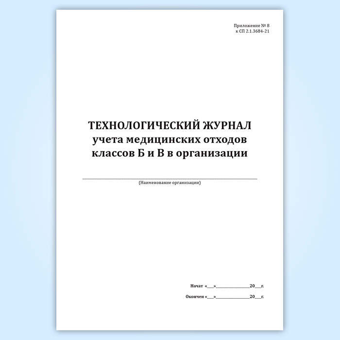 Технологический журнал учета медицинских отходов классов Б и В в организации в Рошале купить