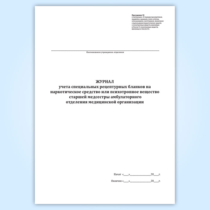 Журнал учета специальных рецептурных бланков на наркотическое средство или психотропное вещество старшей медсестры амбулаторного отделения медицинской организации в Рошале купить