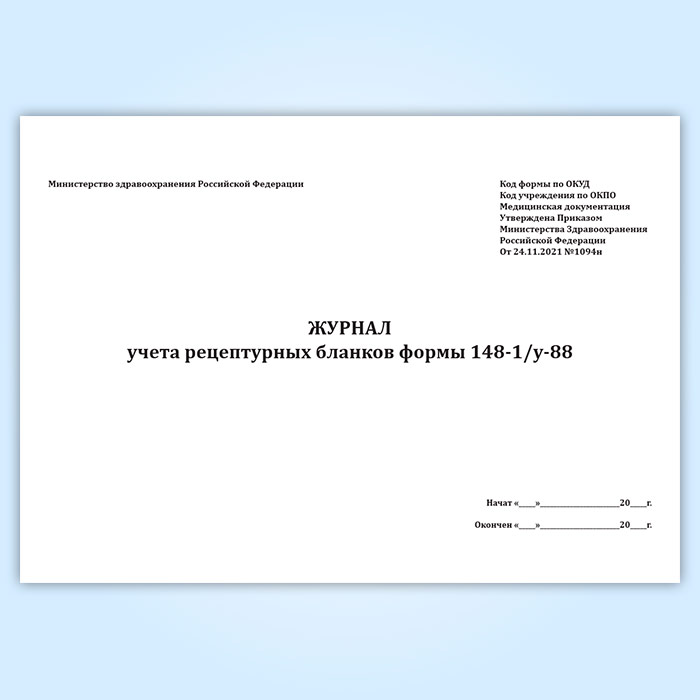 Журнал учета рецептурных бланков формы 148-1/у-88 (новый) (Приказ Минздрава России от 24.11.2021 N 1094н) в Рошале купить