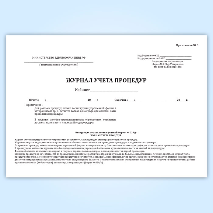 Журнал учета процедур (форма № 029/у) в Рошале купить