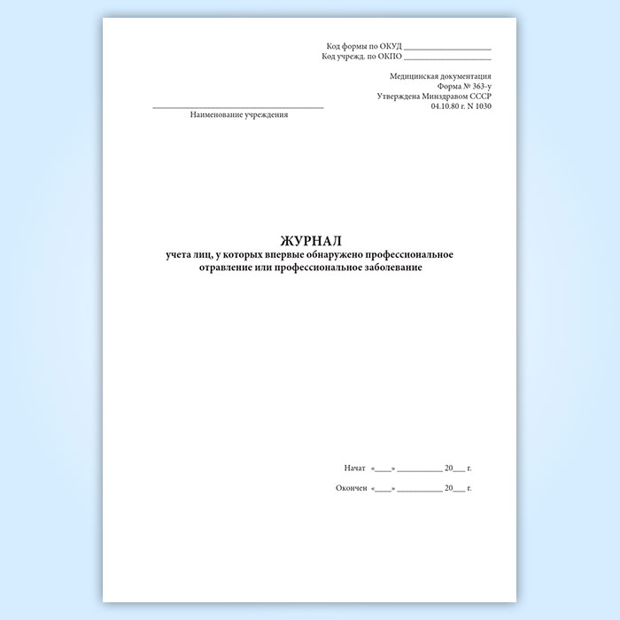 Журнал учета лиц, у которых впервые обнаружено профессиональное отравление или профессиональное заболевание (форма 363-у) в Рошале купить