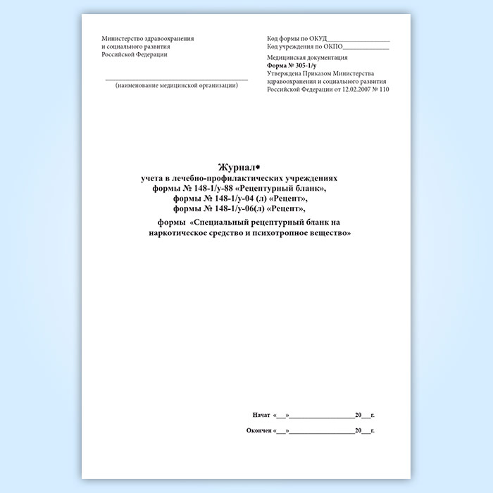 Журнал учета в лечебно-профилактических учреждениях формы 148-1/у-88 «Рецептурный бланк», 148-1/у-04(л) «Рецепт», 148-1/у-06(л) «Рецепт», формы «Специальный рецептурный бланк на наркотическое средство и психотропное вещество форма» в Рошале купить