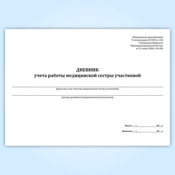 Дневник учета работы медицинской сестры участковой (форма 039/у-1-06) в Рошале купить