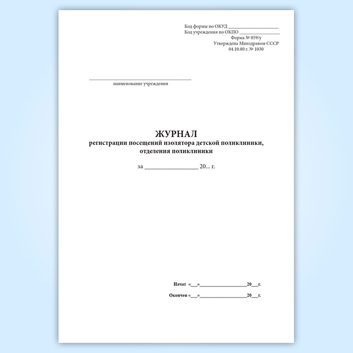 Журнал регистрации посещений изолятора детской поликлиники, отделения поликлиники (форма 059/У) в Рошале купить