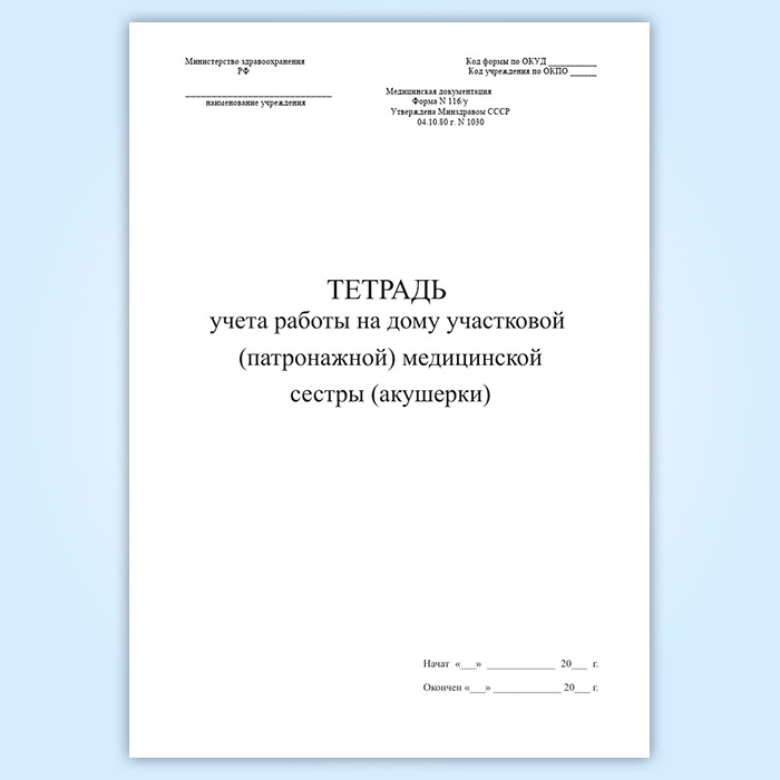 Тетрадь учета работы на дому участковой (патронажной) медицинской сестры (акушерки) (форма 116/у) в Рошале купить