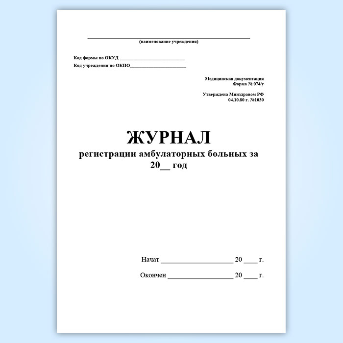 Журнал регистрации амбулаторных больных (форма 074/у) в Рошале купить